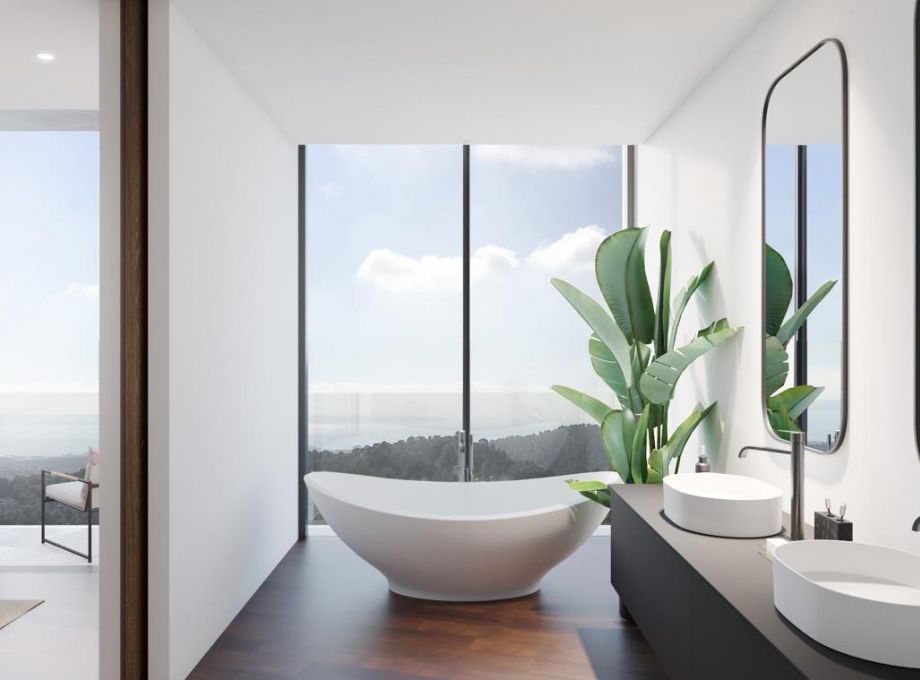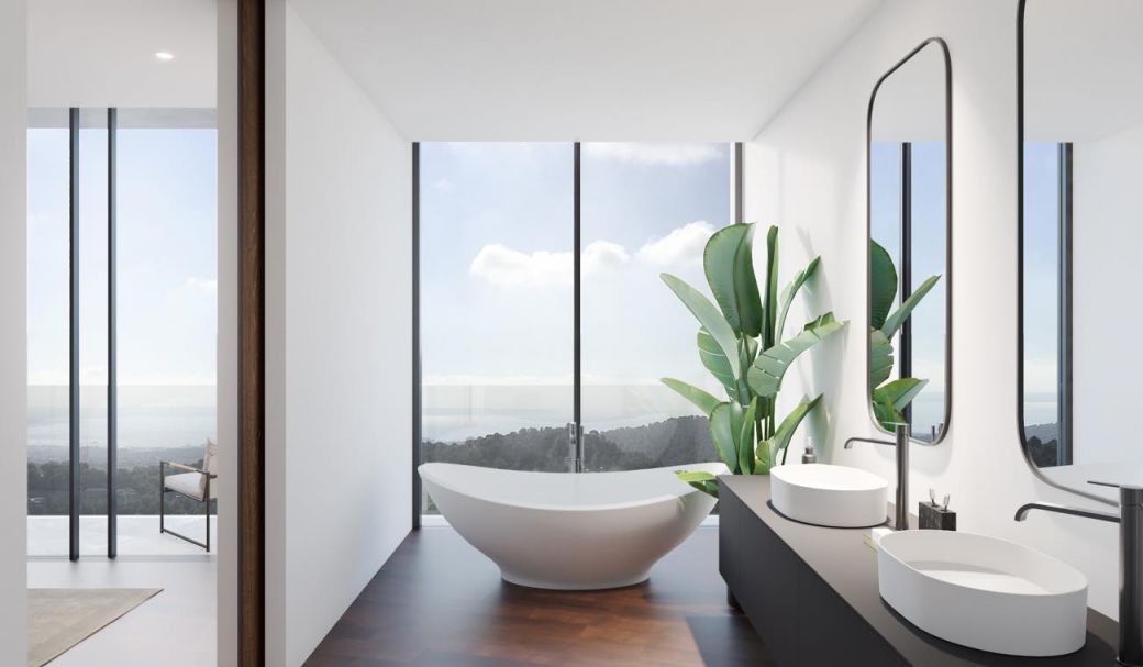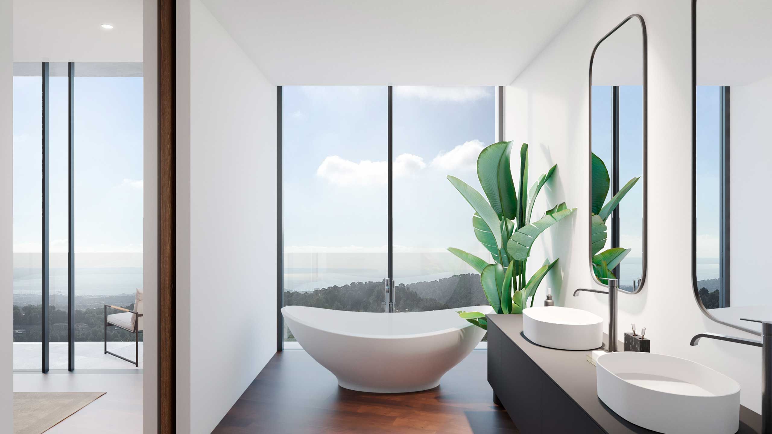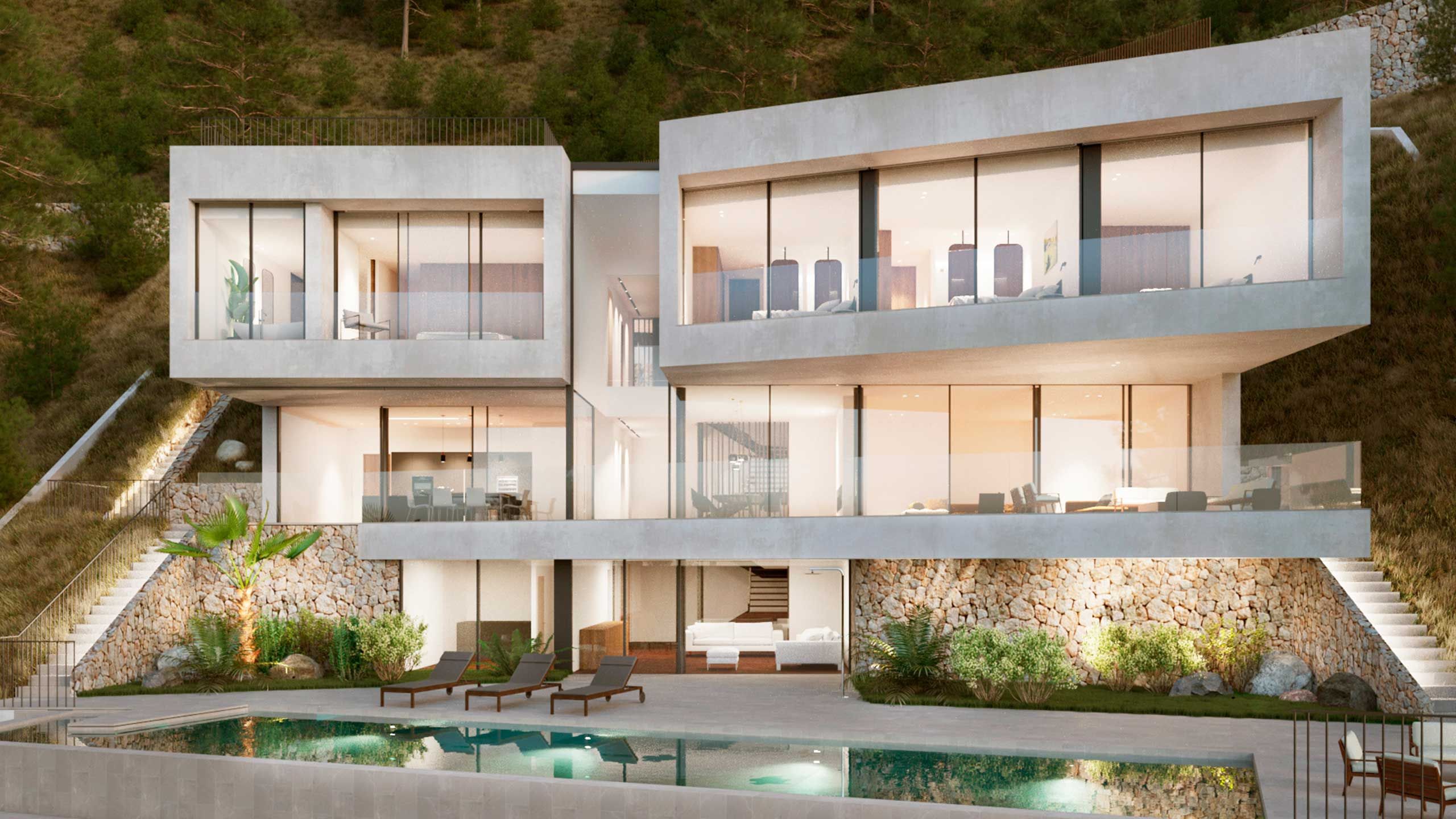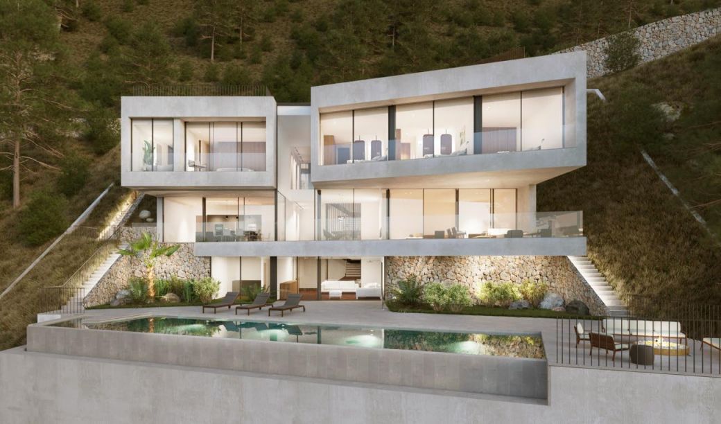 Das dreistöckige Anwesen mit Panoramablick auf Palma de Mallorca und das Mittelmeer besticht durch ein zeitloses Design das mit verschiedensten