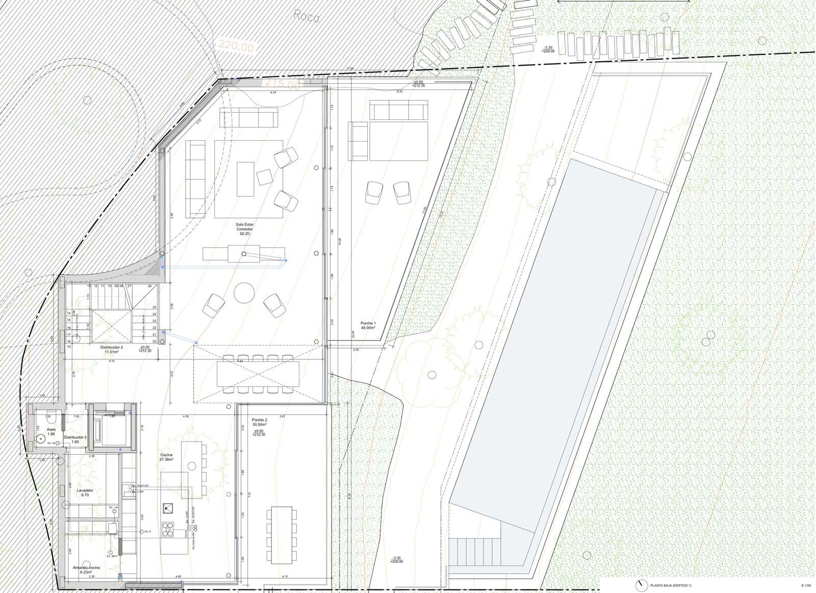 Spa-, Sauna- und Fitnessbereich, Abstellraum, Bad, Poolebene mit 18 x 4,6 Meter großem Salzwasser-Pool und Aussenterrasse